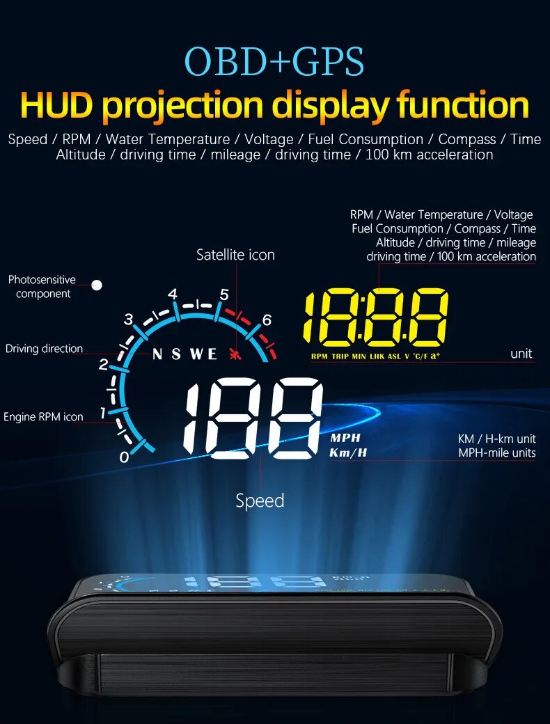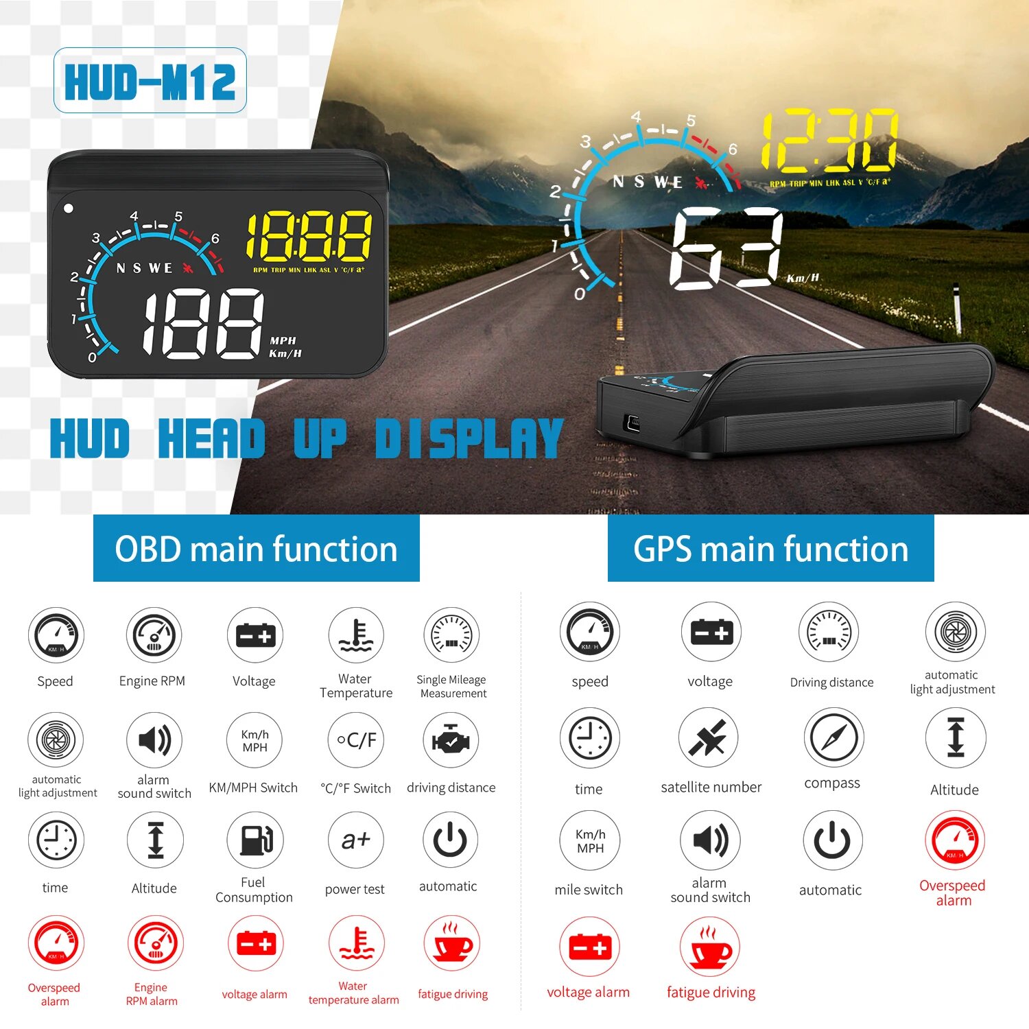 Автомобильный OBD2 GPS M12 HUD проекционный дисплей бортовой компьютер авто проектор гаджеты inteligentes электроника с бензиновым автомобилем, M12 интересное: