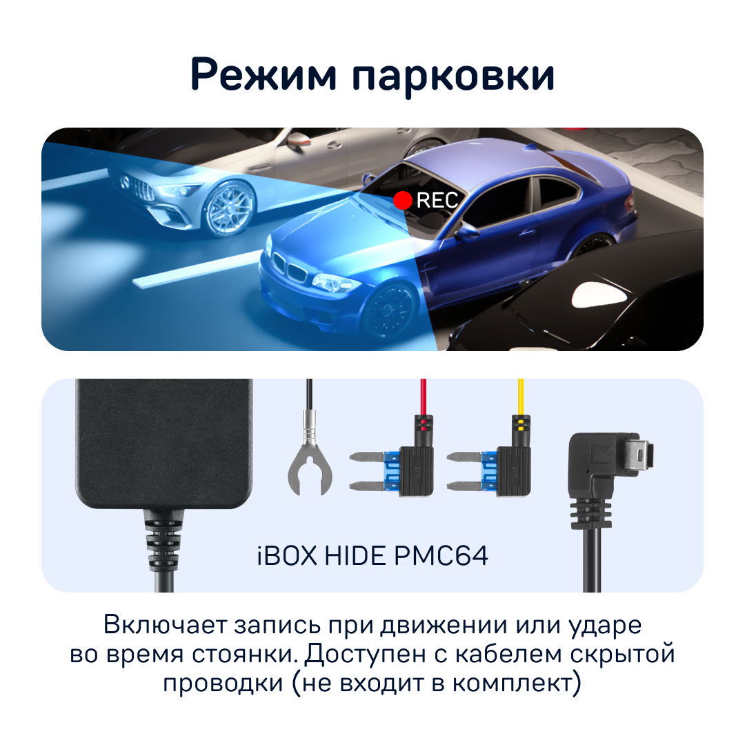 | Режим парковки | Доступен при использовании кабеля для скрытой установки |