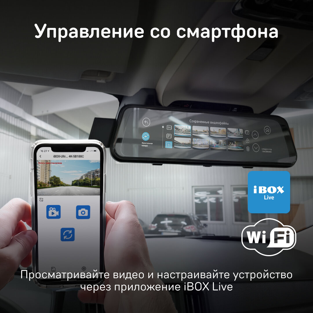 Видеорегистратор-зеркало iBOX UltraWide 4K c камерой заднего вида интересное: