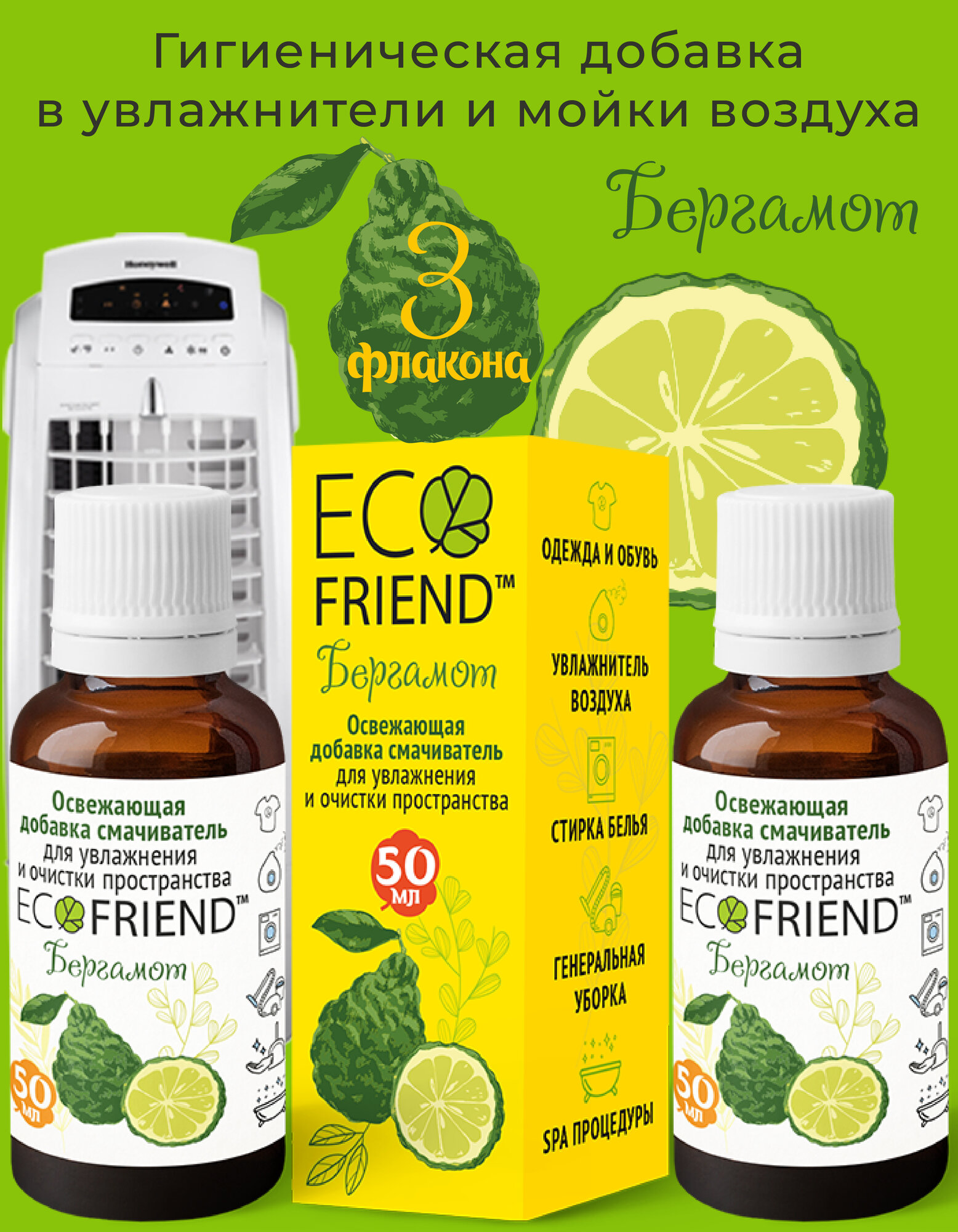 Освежающая добавка в увлажнитель воздуха "Бергамот" набор из 3 флаконов от ECOFRIEND интересное: