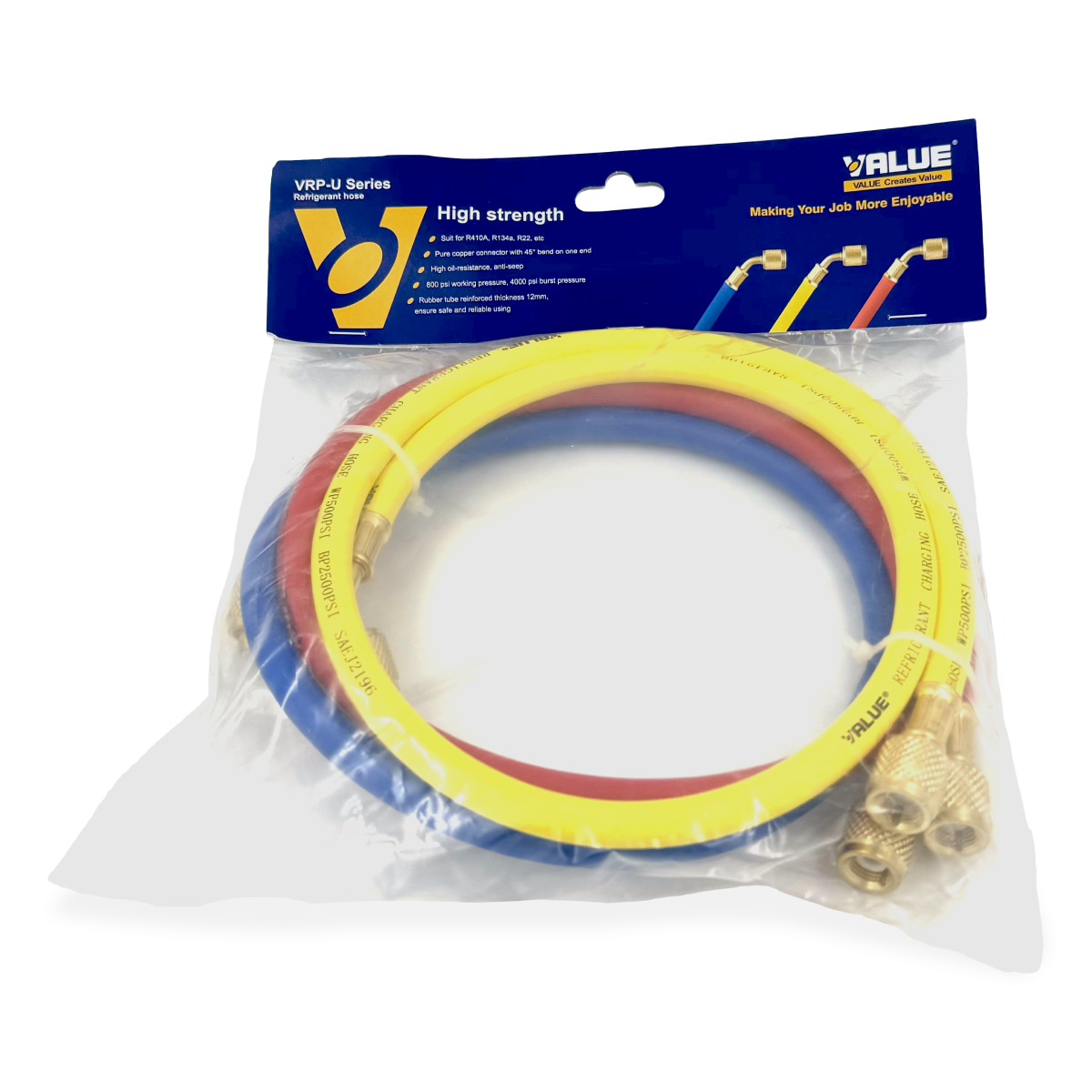 Купить Заправочные шланги Value VRP-U-RYB (1.2 м; 1/4" SAE; набор для R12, 22, 134, 404, 407, 507), до 34 Bar