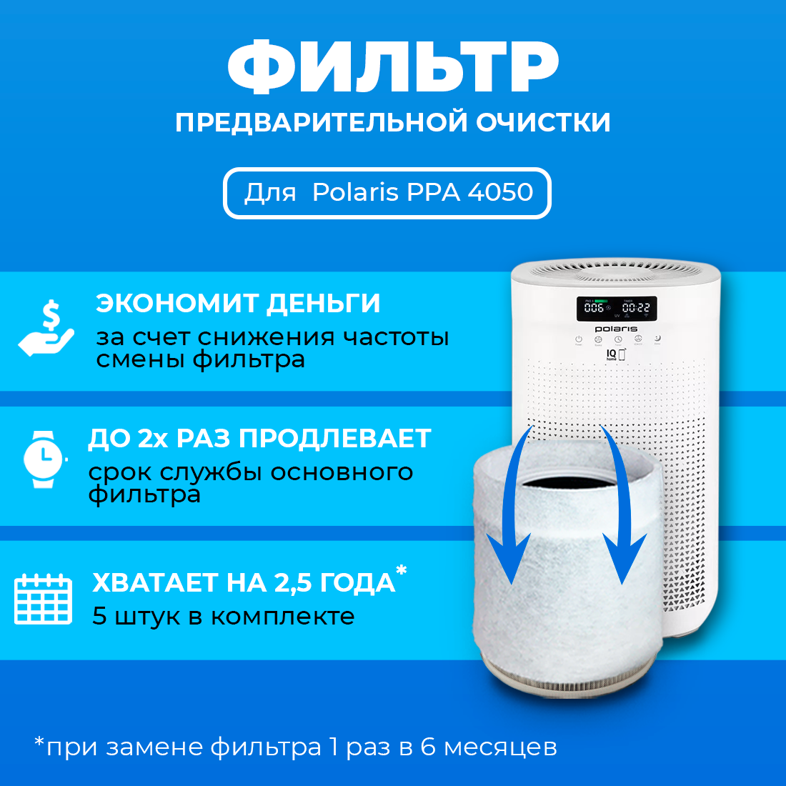 Фильтр для очистителя воздуха Polaris 4050 предварительной очистки. 5 шт. в комплекте. (Префильтр) интересное: