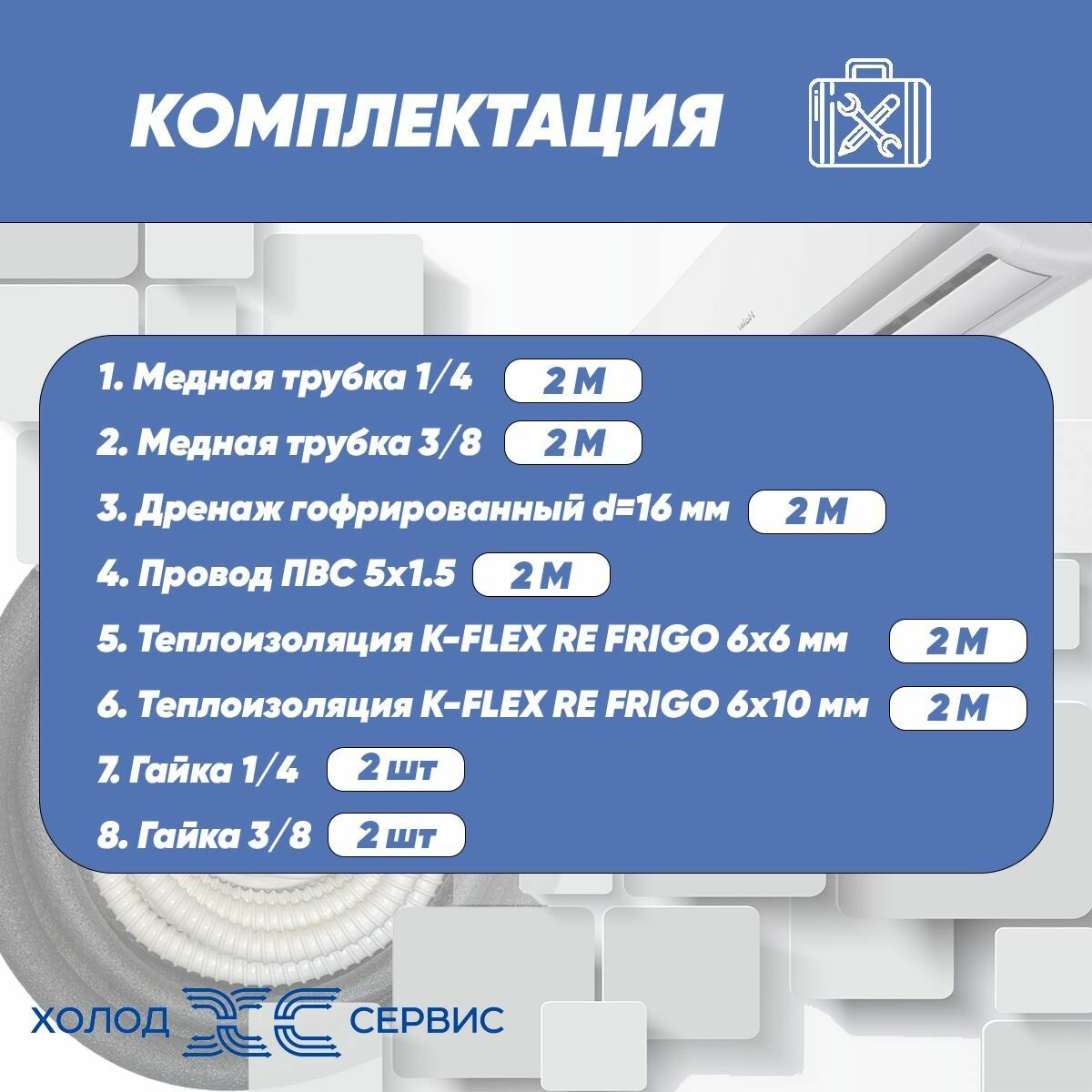 Монтажный комплект для кондиционера 2м, трасса для кондиционера интересное: