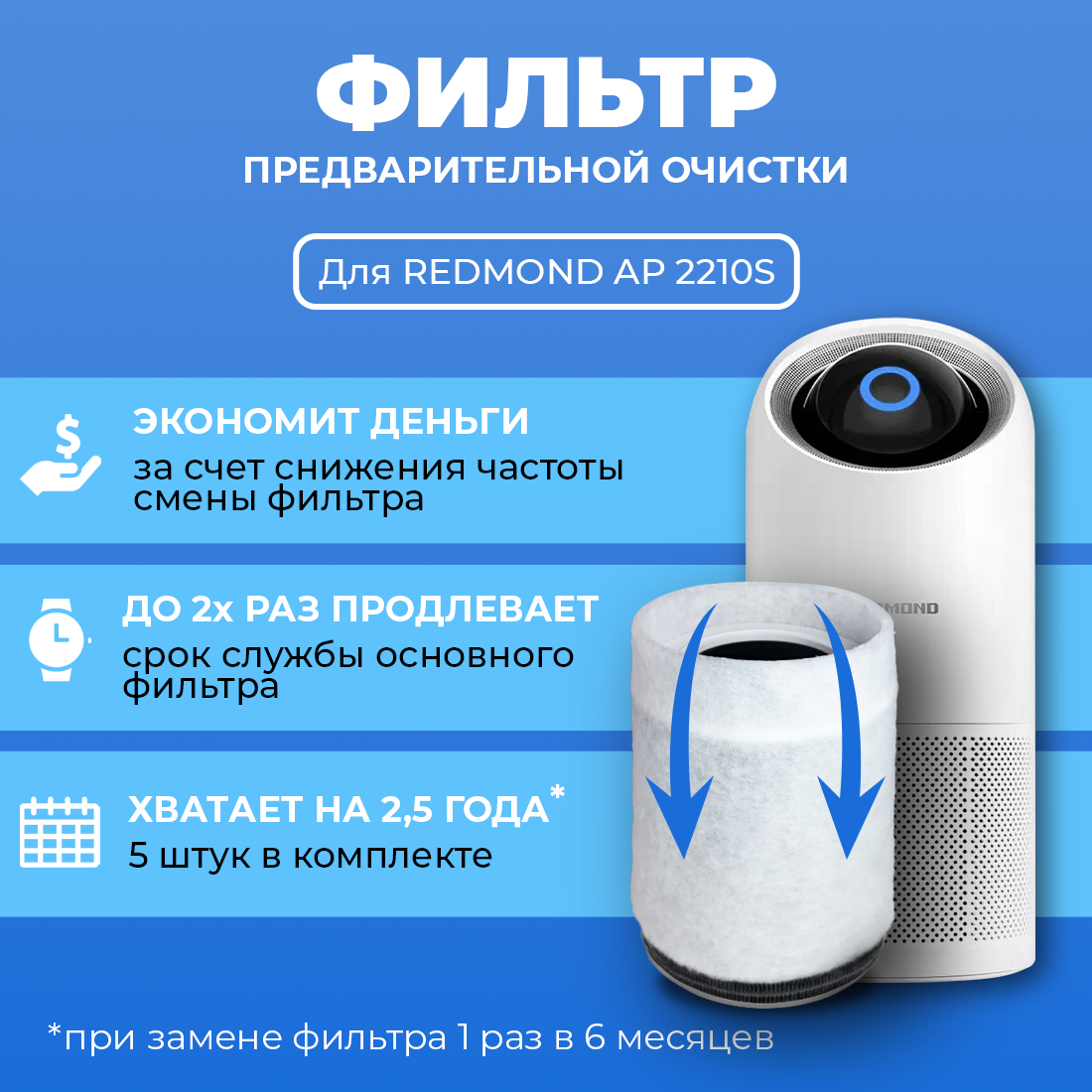 Фильтр для очистителя воздуха REDMOND AP 2210S. Префильтр. 5шт. интересное: