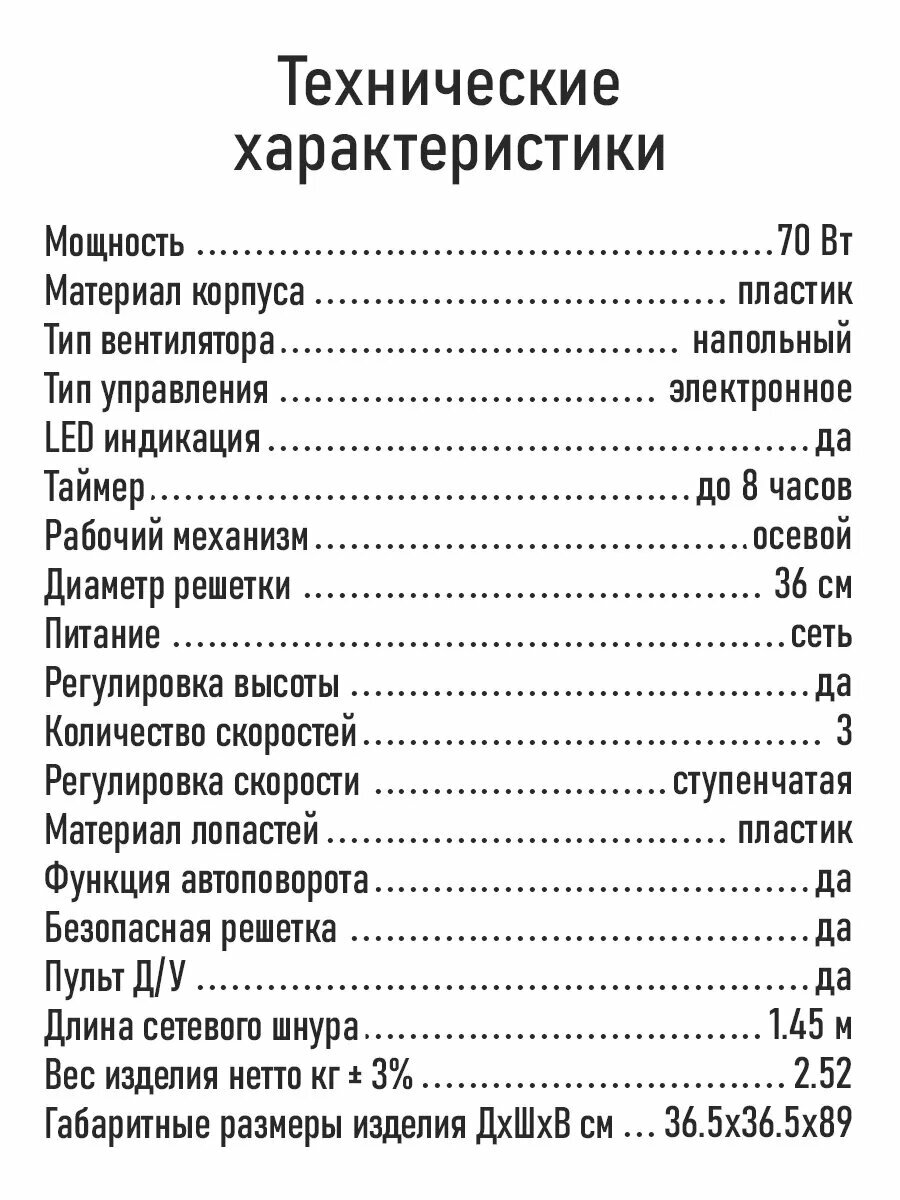 | Дополнительные функции | регулировка высоты / регулировка поворота / регулировка скорости |