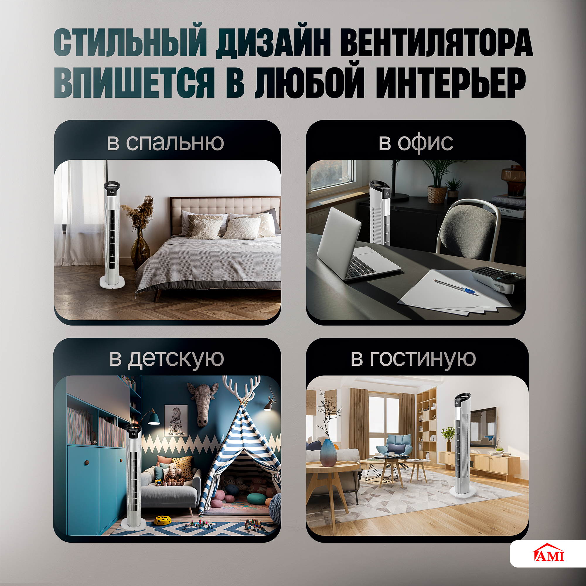 Вентилятор напольный колонный, поворотный вентилятор настольный, белый, 78 см высота, Ами Мебель интересное: