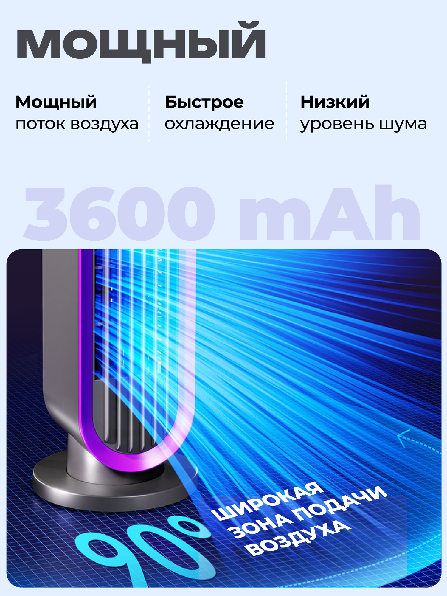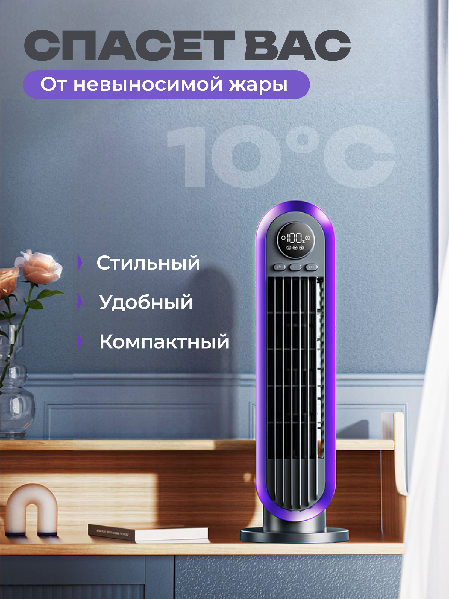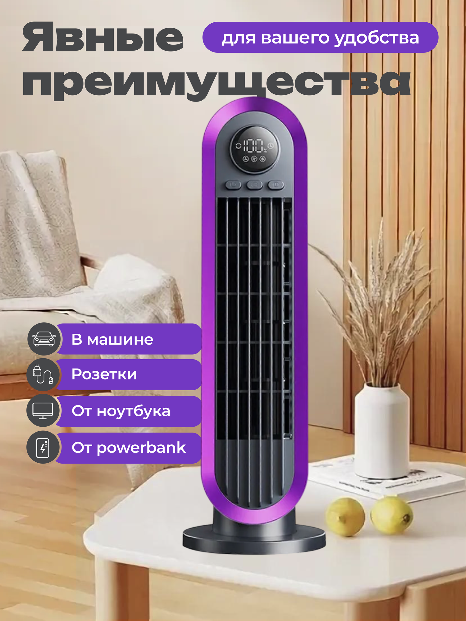 Портативный вентилятор, безлопастной, 10Вт, площадь 50м², тихий, дисплей, серый, фиолетовый интересное: