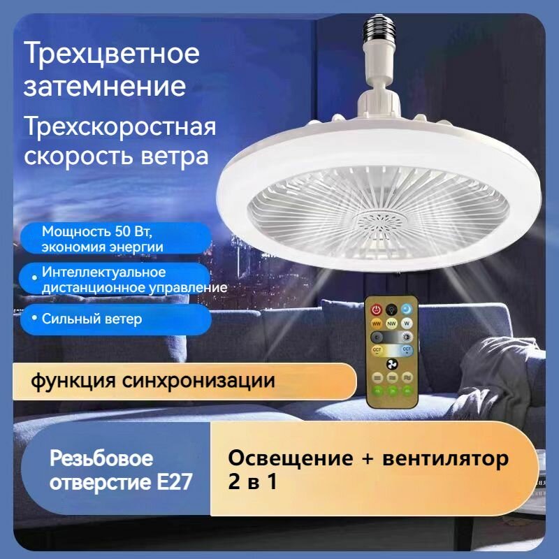 Люстра-вентилятор, E27, 50 Вт, Держатель лампы можно поворачивать