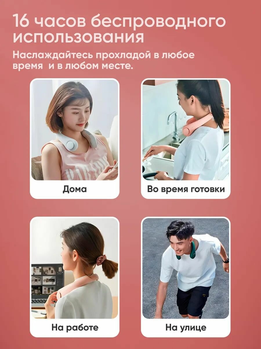 Портативный вентилятор "На шею", USB-питание, мощность 4.5Вт, белый розовый интересное: