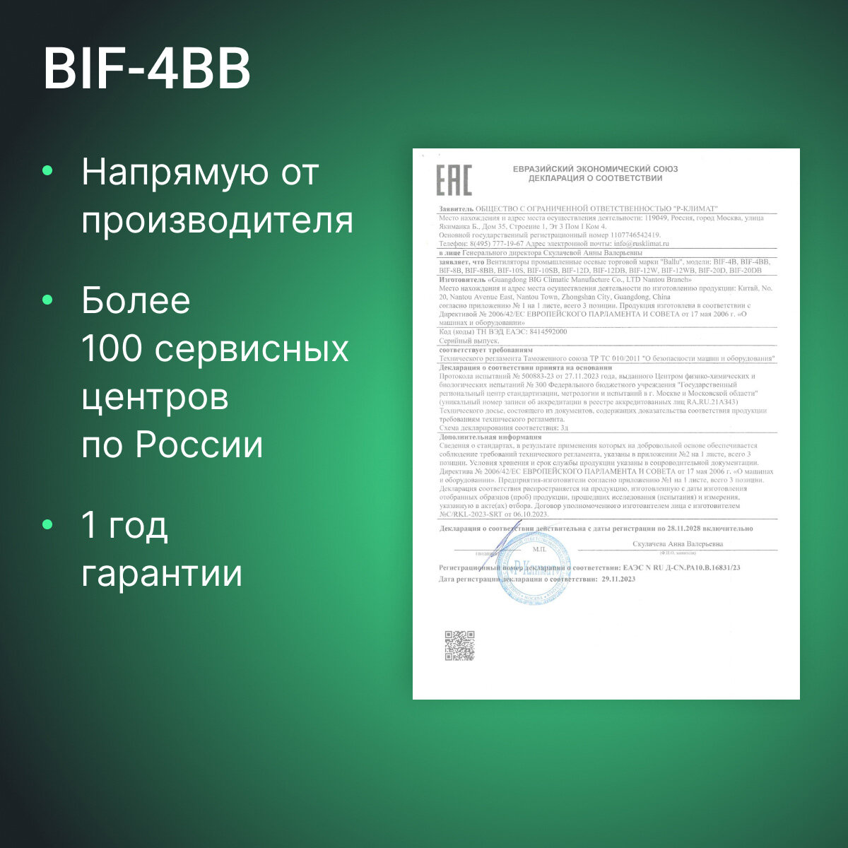 | Дополнительная информация | Внешний диаметр вентилятора: 410 мм; Тип основания: Поворотная опора; Макс. высота: 45 см; Тип двигателя: Электрический; Тип вентилятора: Напольный; Макс. скорость потока: 5,85 м/с; Гарантийный документ: Гарантийный талон; Область применения: Промышленное оборудование; Защита от перегрева; Регулировка скорости вращения вентилятора: Ступенчатая; Серия: BIF; Материал лопастей: Металл; Количество лопастей: 3; Количество режимов работы: 3; Макс. производительность: 3 800 м3/час; Класс пылевлагозащищенности: IP21; Набор крепежных элементов в комплекте; Напряжение электропитания, В: 220 - 240; |