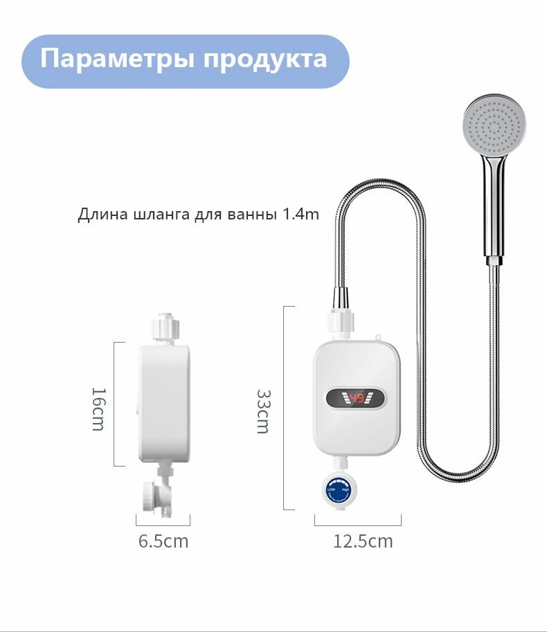 Водонагреватель проточный , с душем, LED-дисплеем, с Утечка электроэнергии Защитник белый интересное: