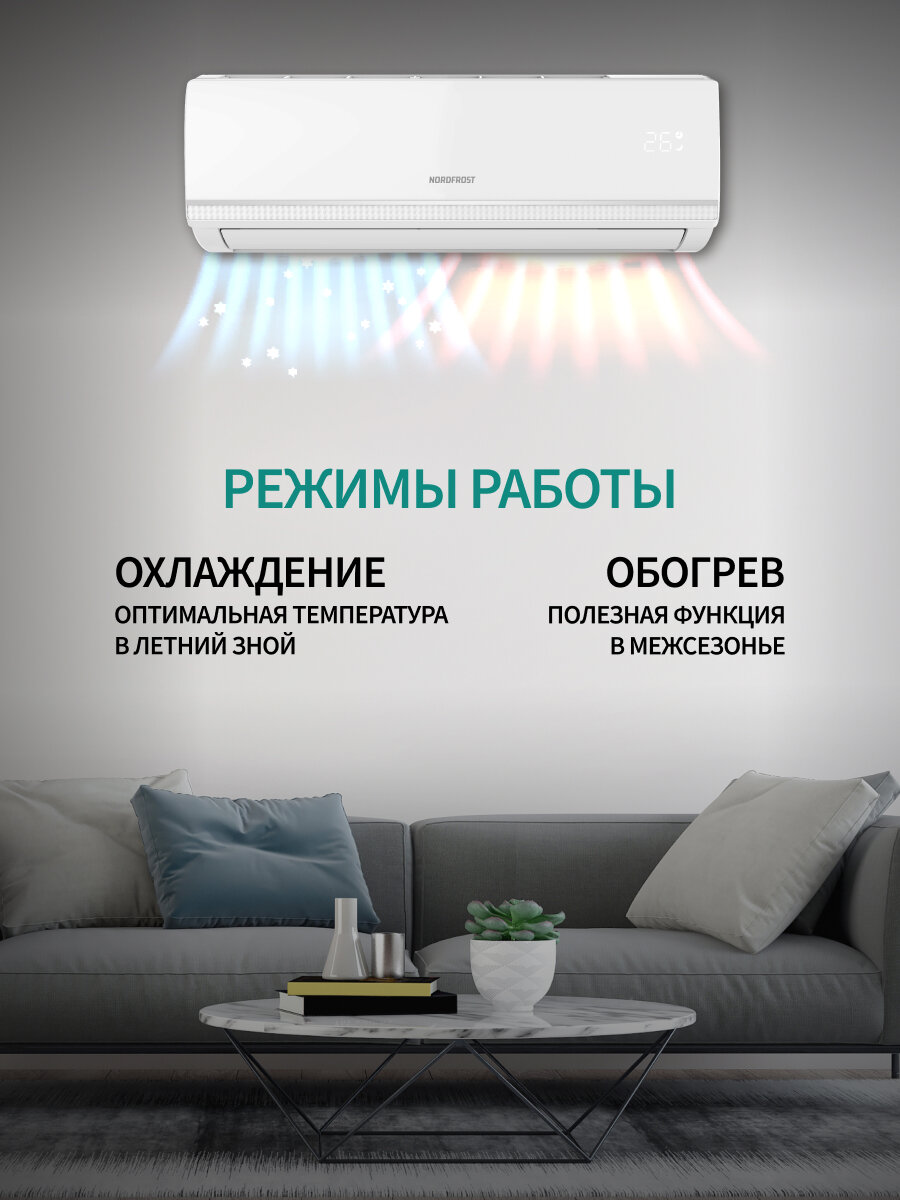 Сплит-система NORDFROST AC 18 QUB, хладагент R 410A, регулировка направления воздушного потока, функция I feel, белый интересное: