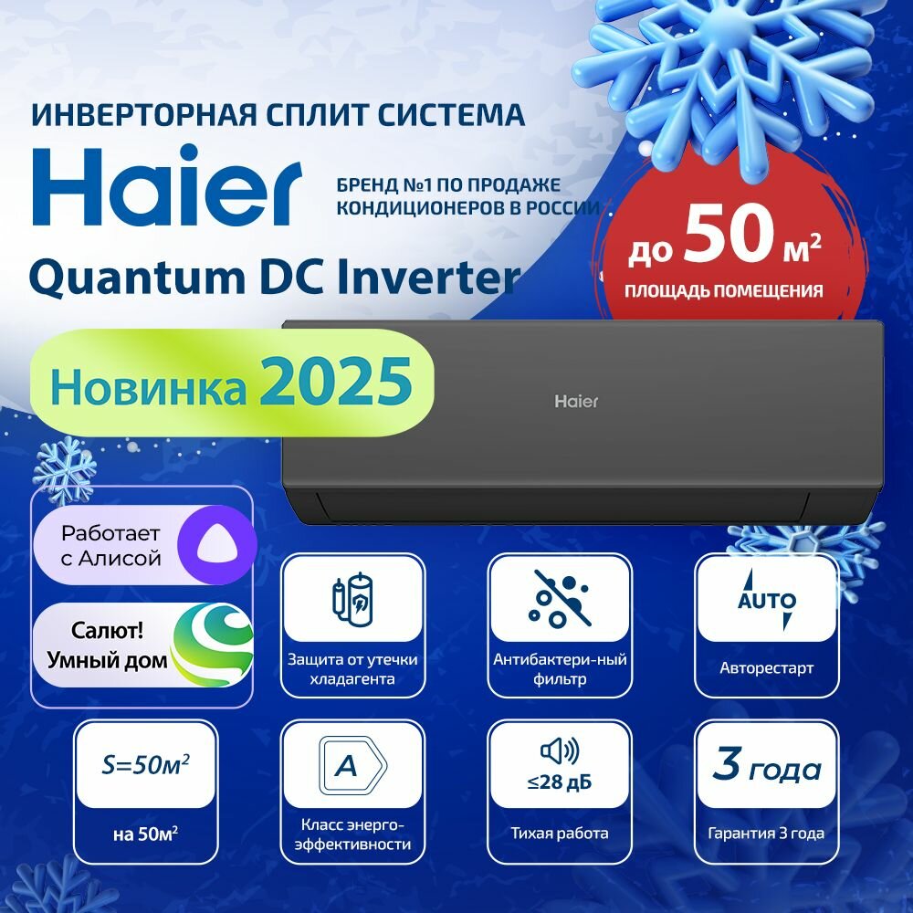 Новая инверторная сплит-система Haier QUANTUM Inverter AS50HQJ1HRA-B/1U50HQJ1FRA, для помещений 50 кв. м, черного цвета интересное: