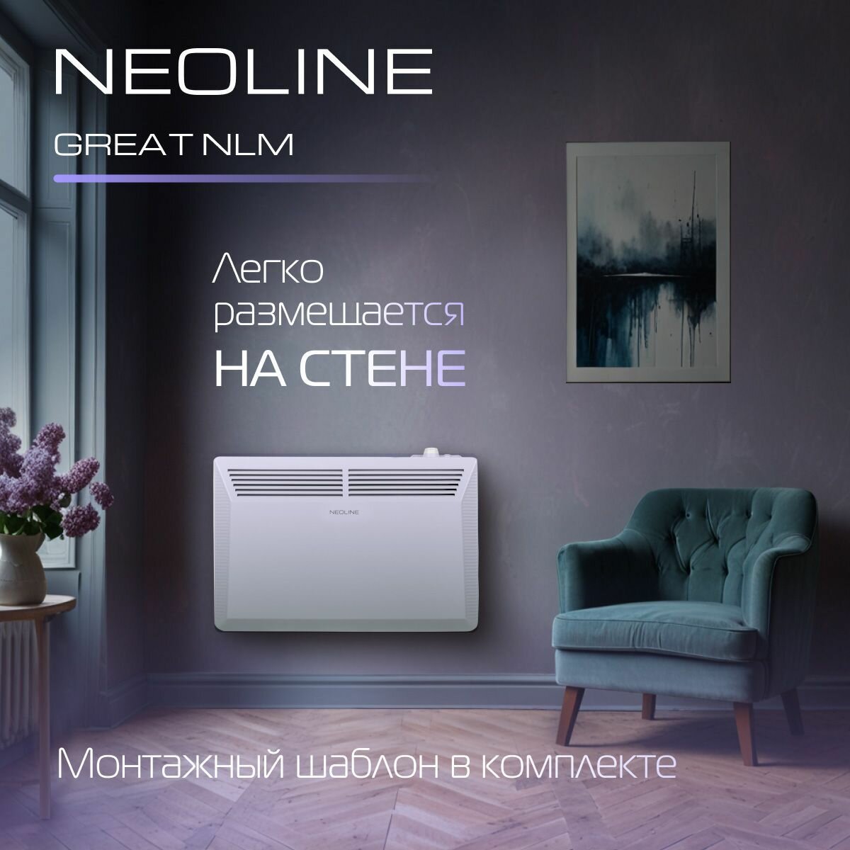 Конвектор электрический NEOLINE "Great" NLM-1000, белый, механический, монолитный, 15 м²