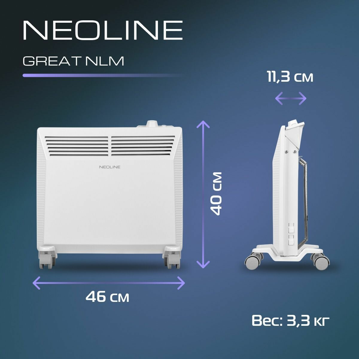 Конвектор электрический NEOLINE "Great" NLM-1000, белый, механический, монолитный, 15 м² интересное: