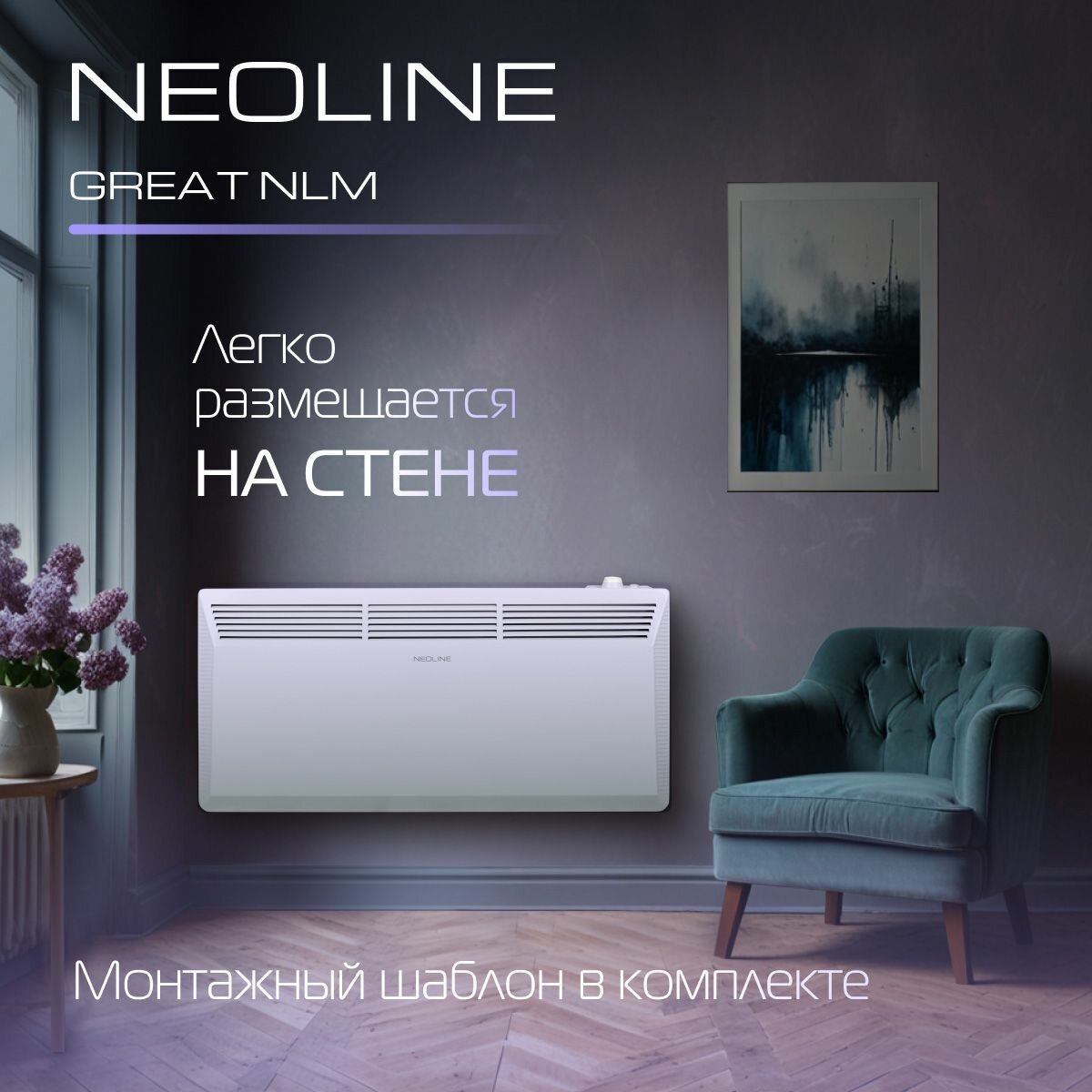Конвектор электрический NEOLINE "Great" NLM-1000, белый, механический, монолитный, 15 м²