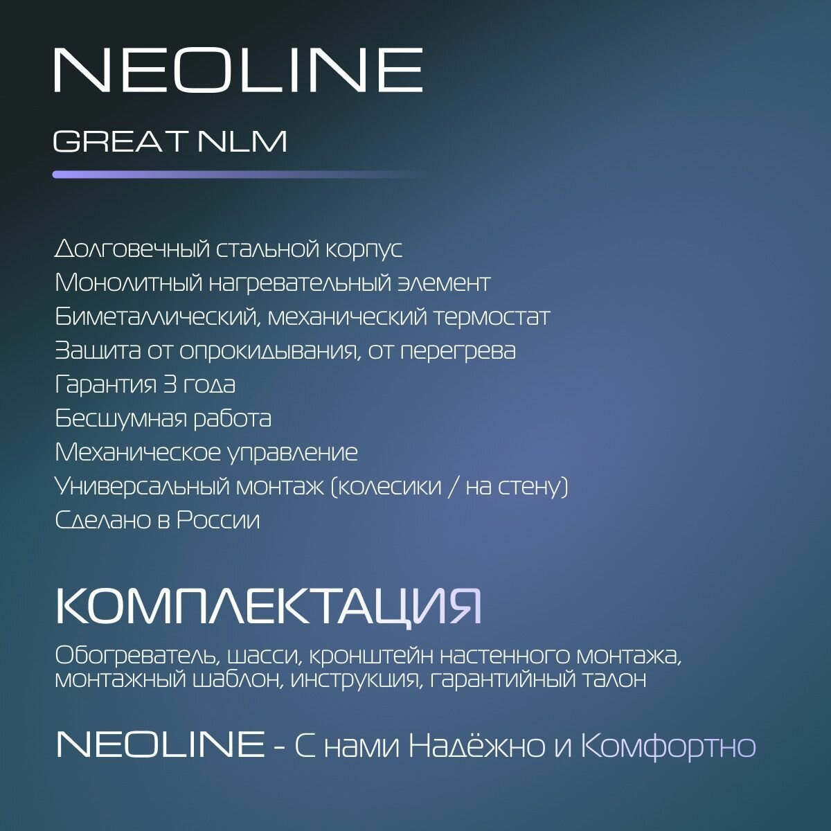 Конвектор электрический NEOLINE "Great" NLM-2000, напольный, монолитный нагревательный элемент интересное: