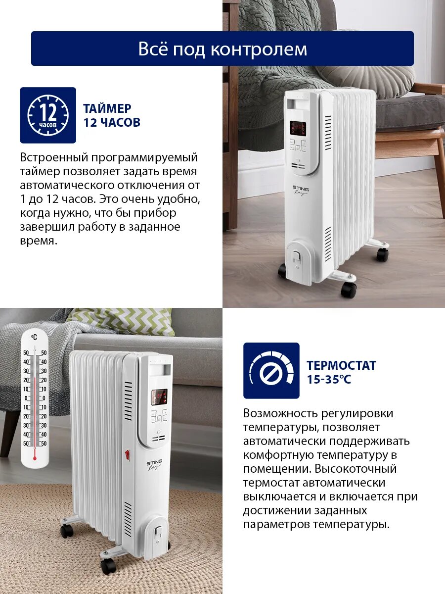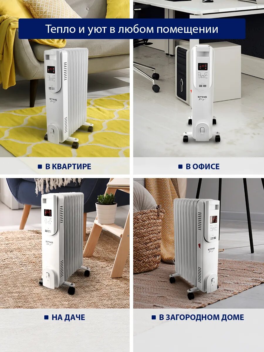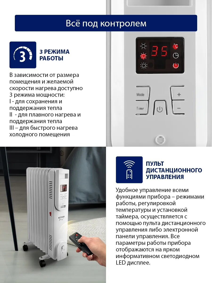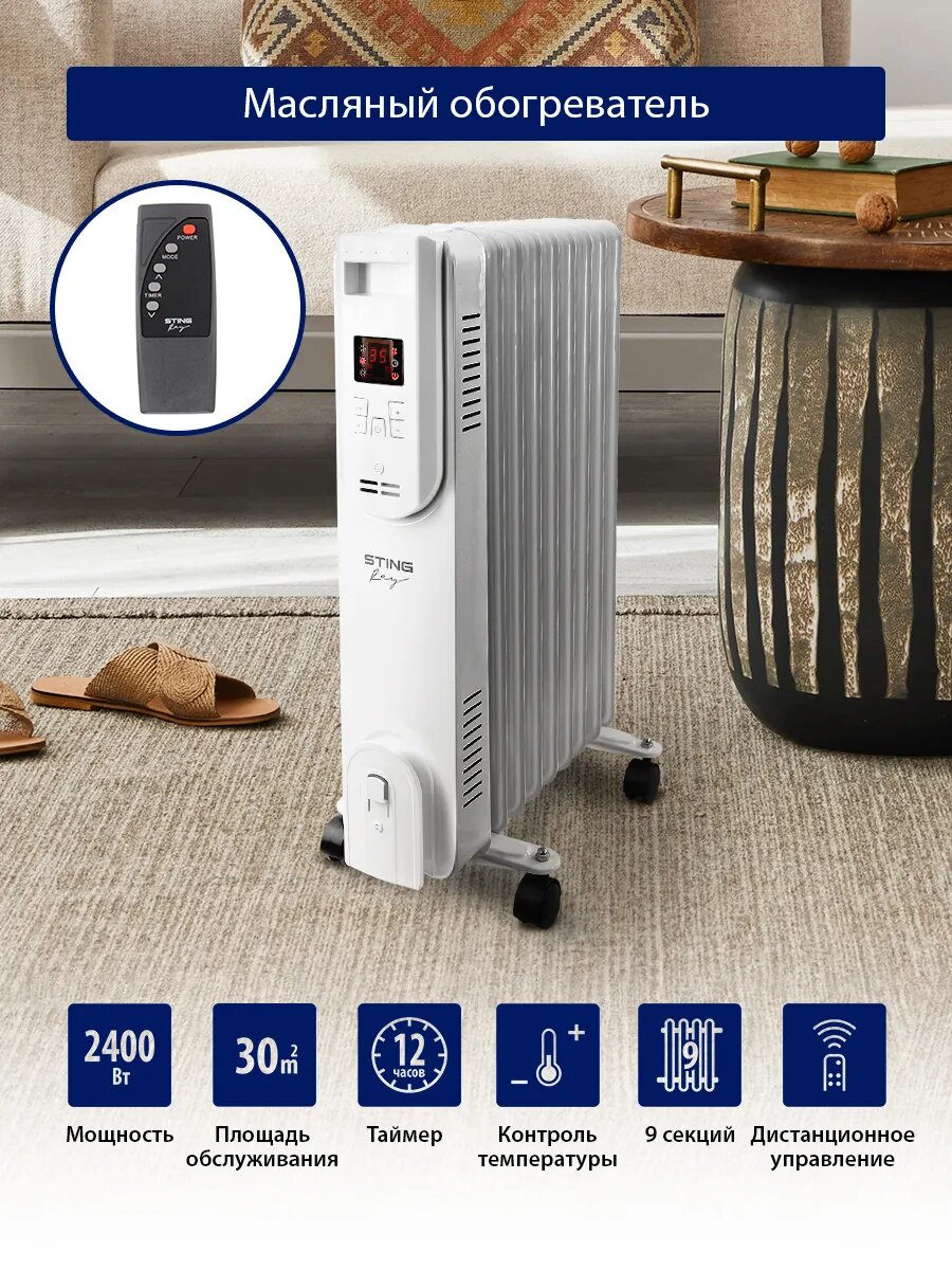 Масляный радиатор STINGRAY ST-OH1001A, 2,4 кВт, 9 секций, с пультом, LED-дисплей, белый интересное: