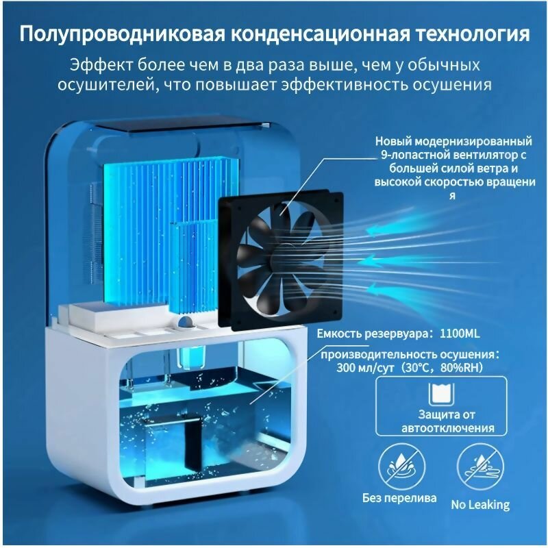Многофункциональный осушитель воздуха с дисплеемС семицветным окружающим освещением интересное: