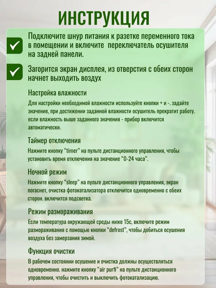 | Дополнительные функции | Осушитель |