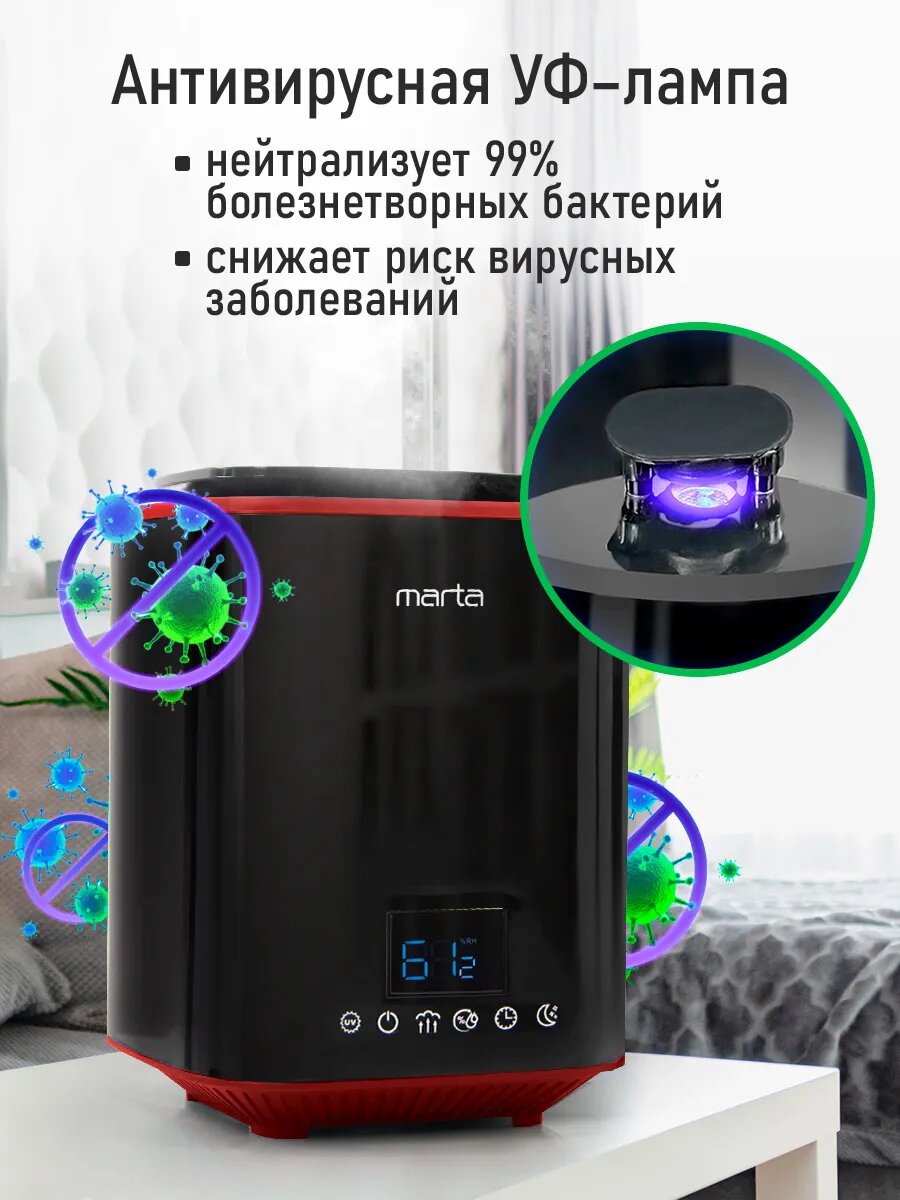 Увлажнитель воздуха ультразвуковой MARTA MT-HF4707B верхний залив антивирусная УФ - лампа черный/красный интересное: