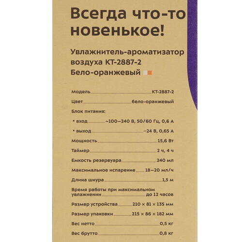Увлажнитель-ароматизатор воздуха Kitfort КТ-2887-2 бело-оранжевый интересное: