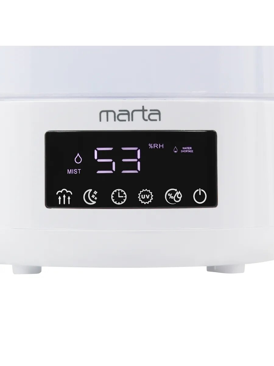 Увлажнитель воздуха ультразвуковой MARTA MT-HF4701A верхний залив антивирусная УФ - лампа белый/серебро