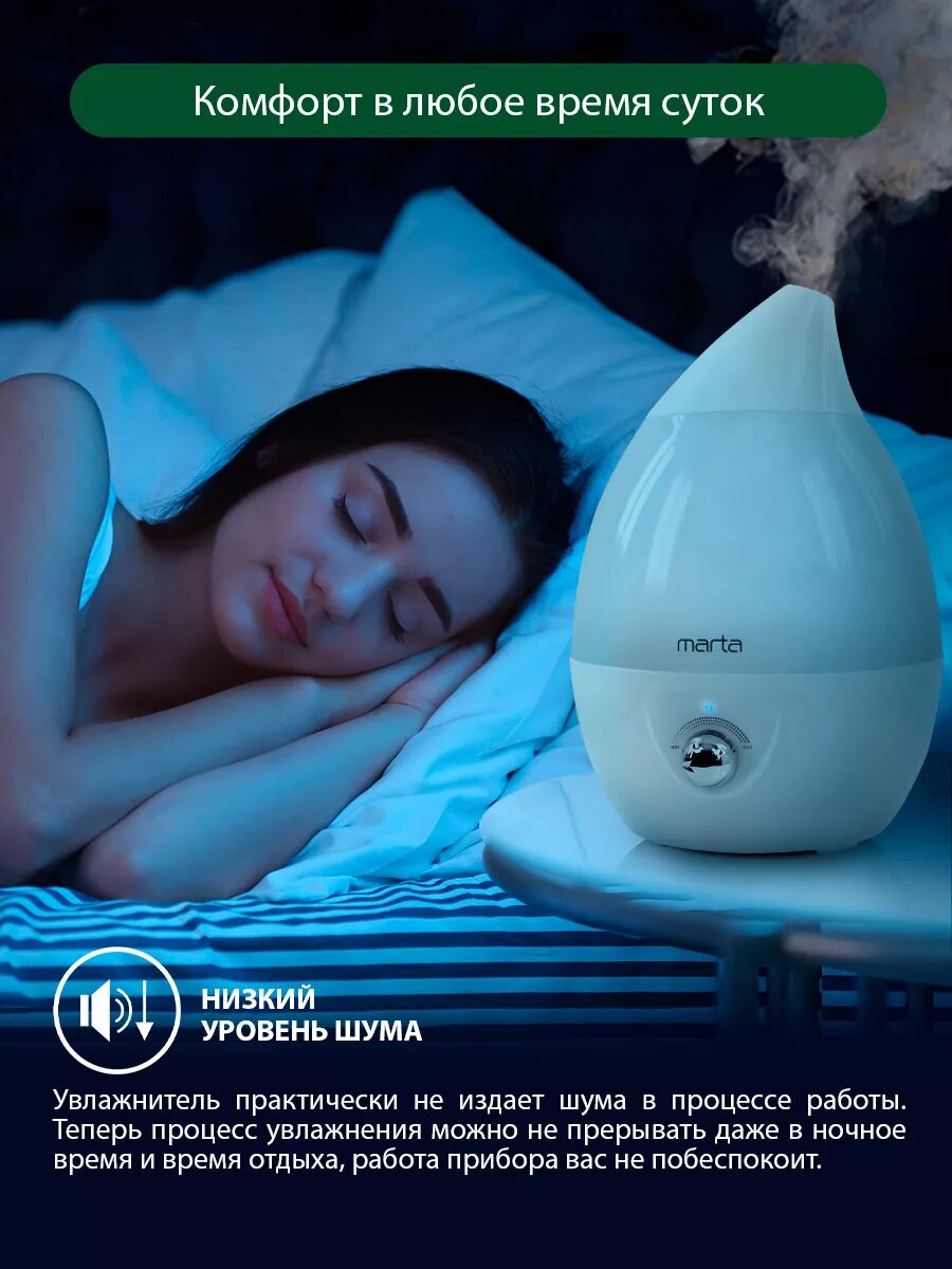 Увлажнитель воздуха ультразвуковой MARTA MT-2370 антивирусная УФ - лампа белый жемчуг интересное: