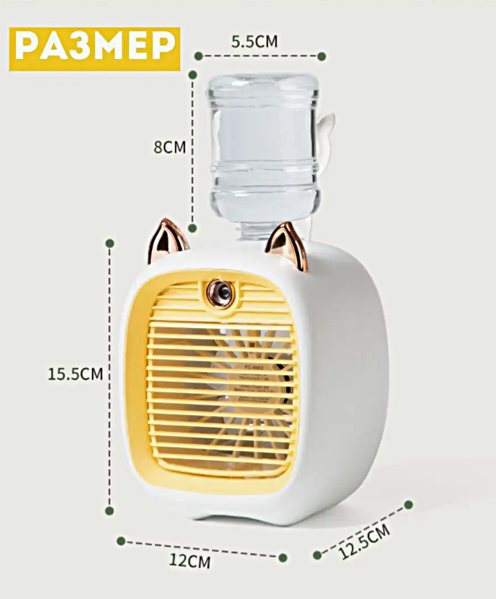 Мини-кондиционер c ушками, Портативный мобильный мини кондиционер, Настольный кондиционер, Увлажнитель воздуха, Желтый