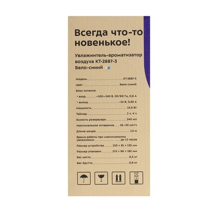 Увлажнитель-ароматизатор воздуха Kitfort КТ-2887-3 бело-синий интересное: