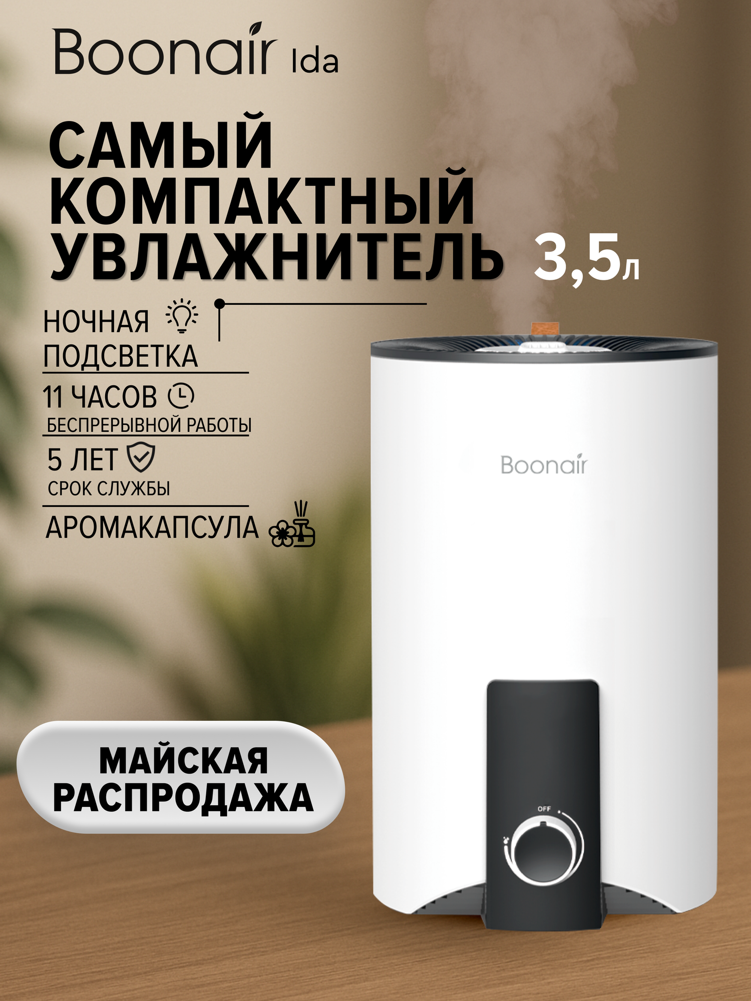 Ультразвуковой увлажнитель с аромадиффузором IDA BOONAIR интересное:
