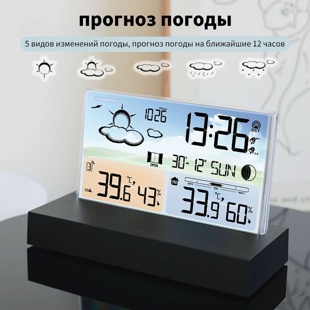 Метеостанция SOVANCI, беспроводная, с датчиком, с часами, белая