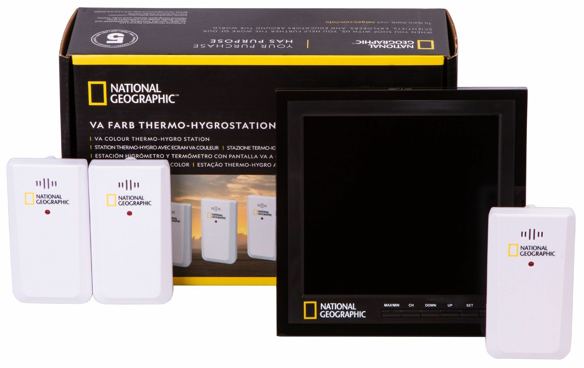 National Geographic Метеостанция с цветным дисплеем и тремя датчиками интересное: