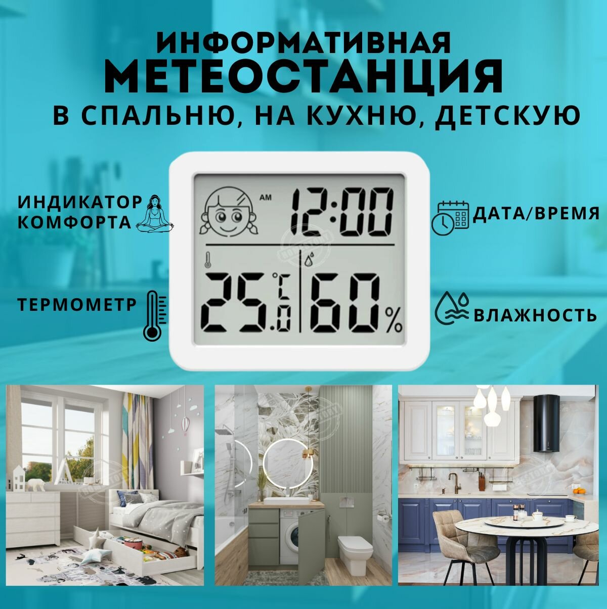 Комнатная метеостанция домашняя, термометр гигрометр, часы интересное: