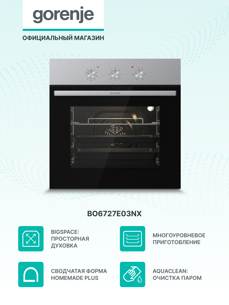 Духовой шкаф Gorenje BO6727E03NX черный объем 73л, независимая установка интересное: