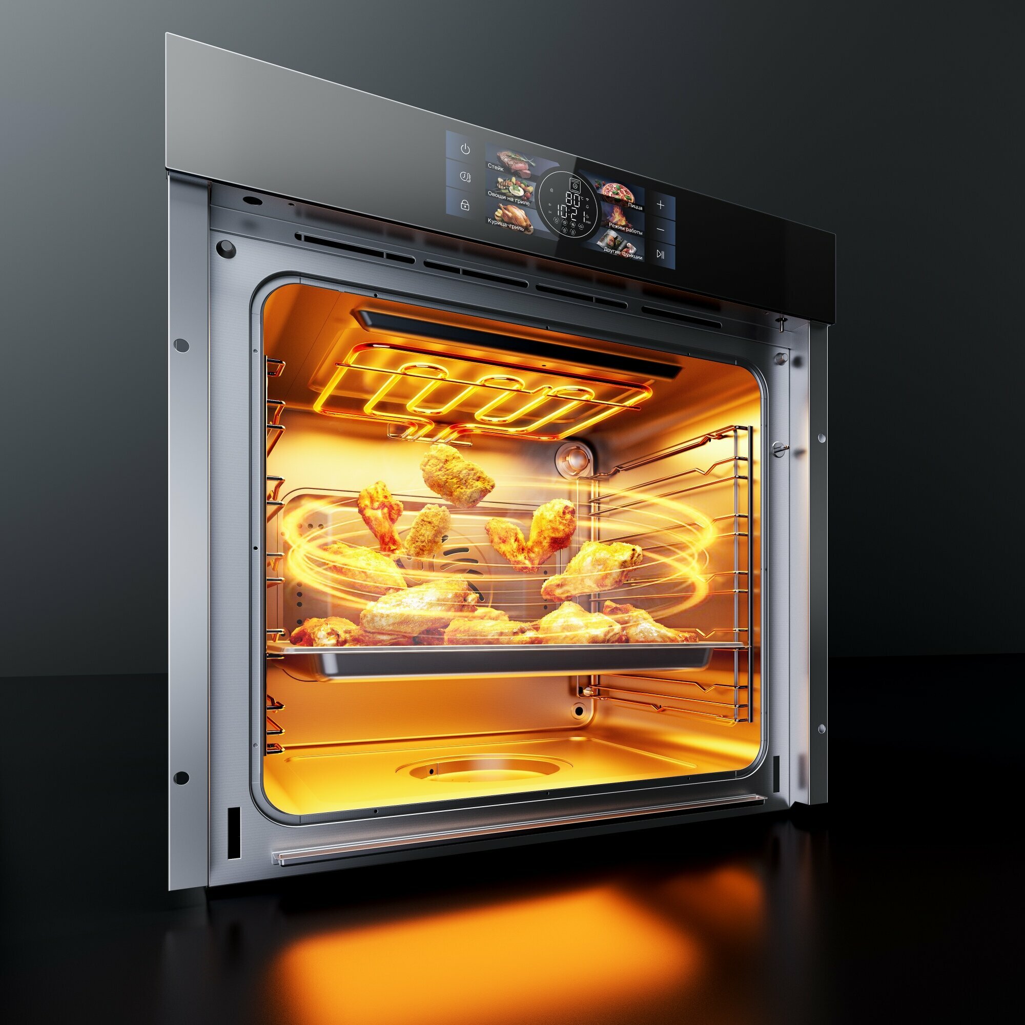 | Особенности конструкции | дисплей / подсветка камеры / часы / Вентилятор охлаждения / встроенный парогенератор / дополнительное боковое освещение / защитное покрытие от отпечатков |