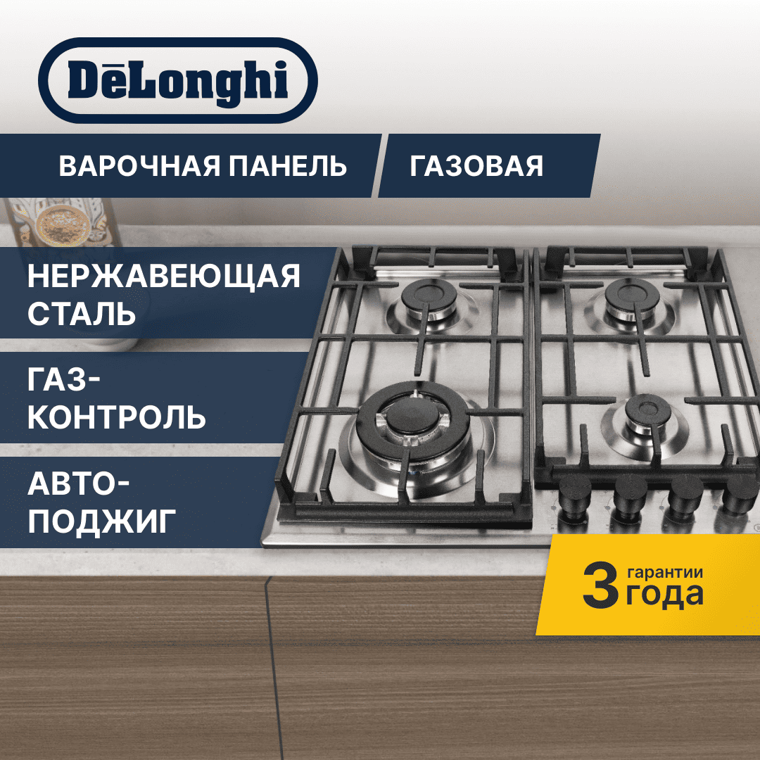 Газовая варочная панель на четыре конфорки Delonghi SLF 460 LX RUS нержавеющая сталь