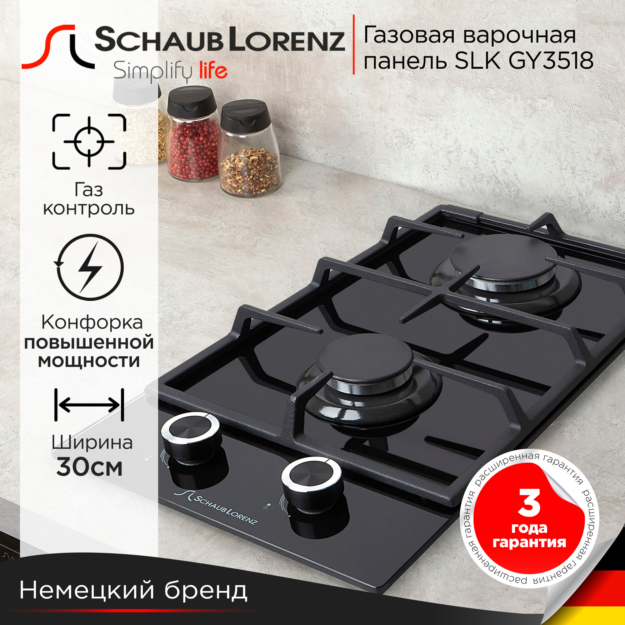 Купить Газовая встраиваемая варочная панель Schaub Lorenz SLK GY3518, чёрное стекло, газконтрольль, автоподжиг