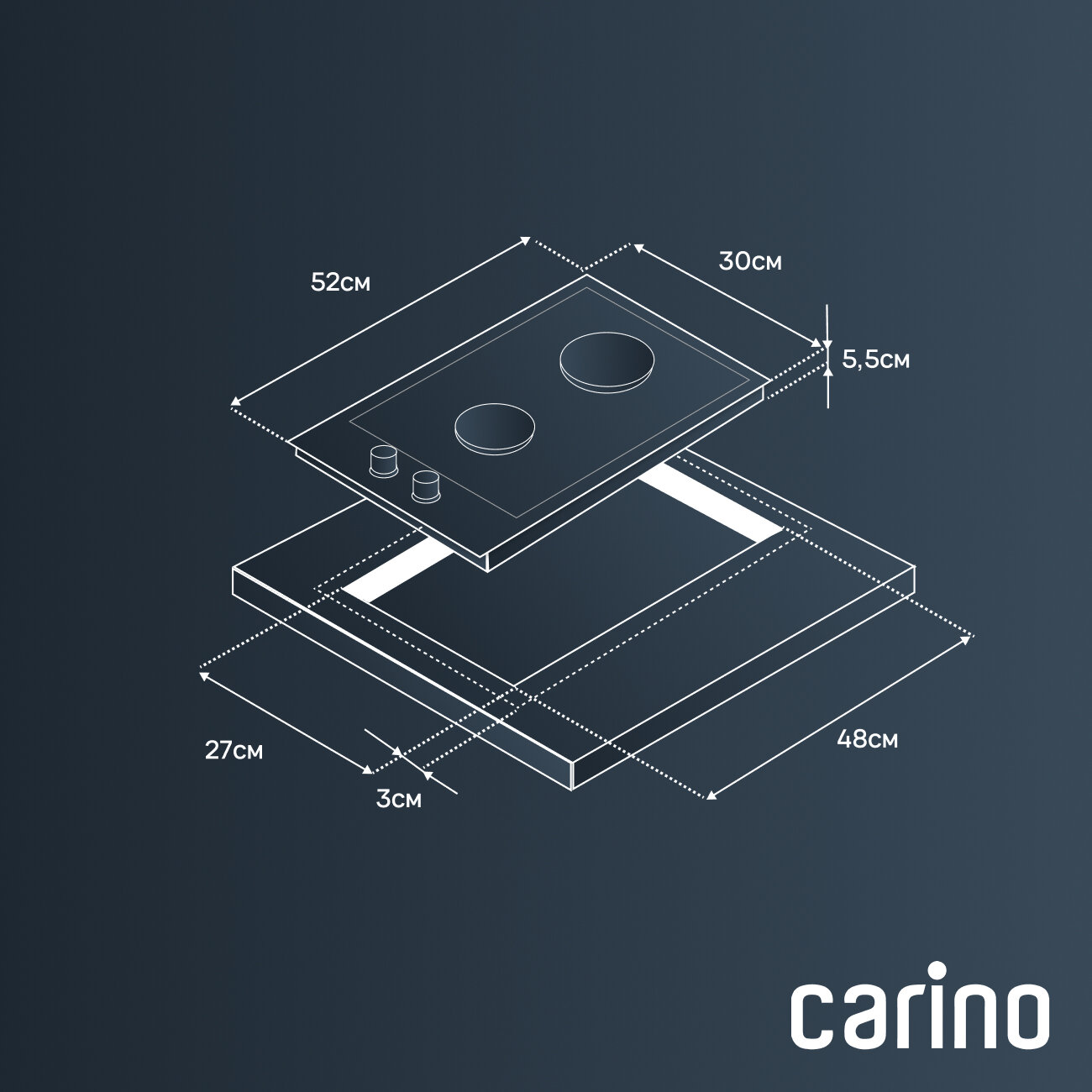Газовая варочная панель CARINO CH30N20B416 30 см, газ-контроль, закаленное стекло, автоматический розжиг