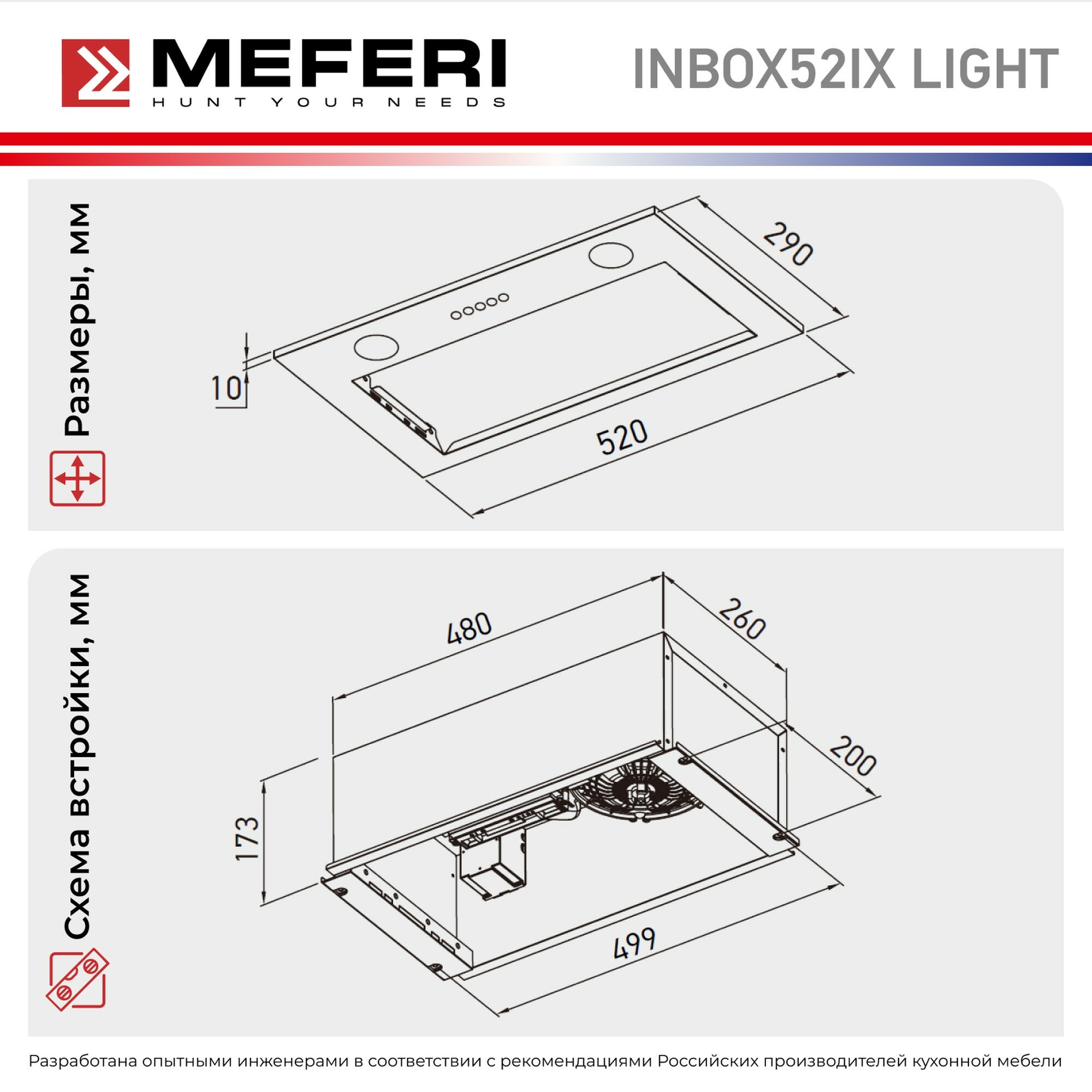 Вытяжка встраиваемая MEFERI INBOX52IX LIGHT, 52 см, серебристый интересное: