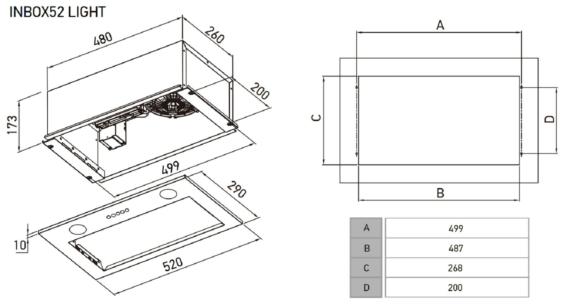 Купить Вытяжка встраиваемая MEFERI INBOX52IX LIGHT, 52 см, серебристый