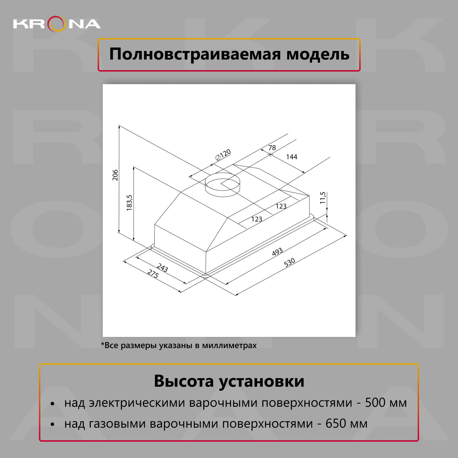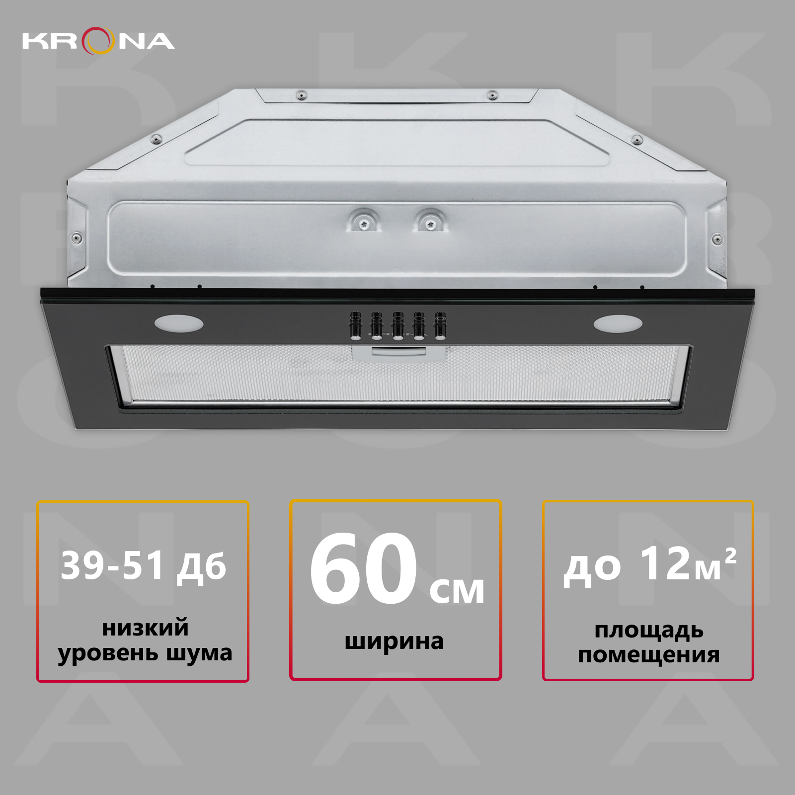 Вытяжка кухонная KRONA LUISA 600 GLASS Black PB черное стекло интересное: