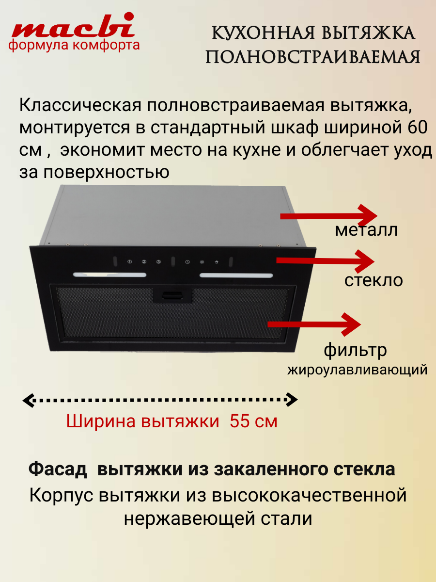 Купить Вытяжка MACBI "YANB-BOX", полновстраиваемая, управление жестами