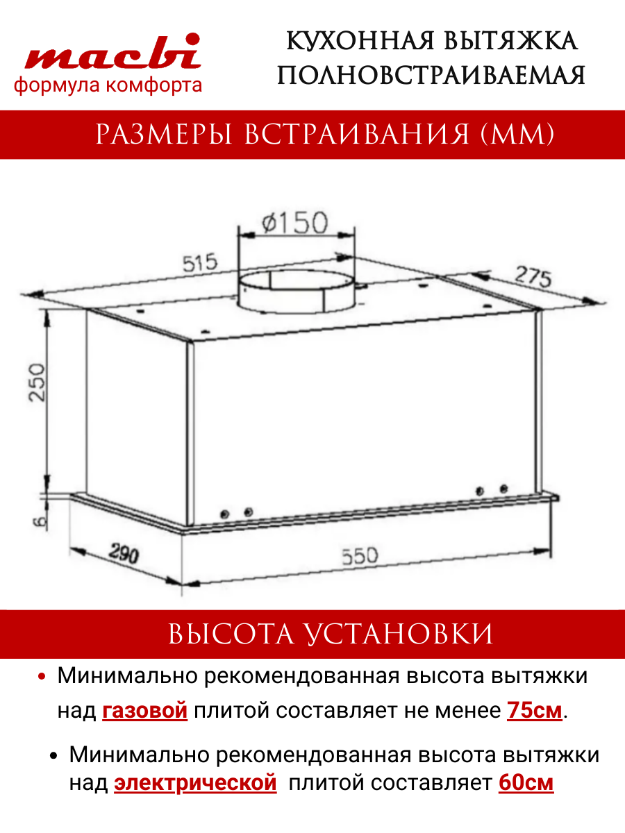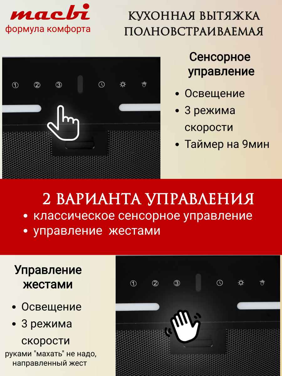 Вытяжка MACBI "YANB-BOX", полновстраиваемая, управление жестами интересное: