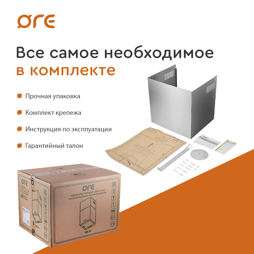 Вытяжка ORE A, узкая, ширина 40 см, цвет нержавеющая сталь, интересное: