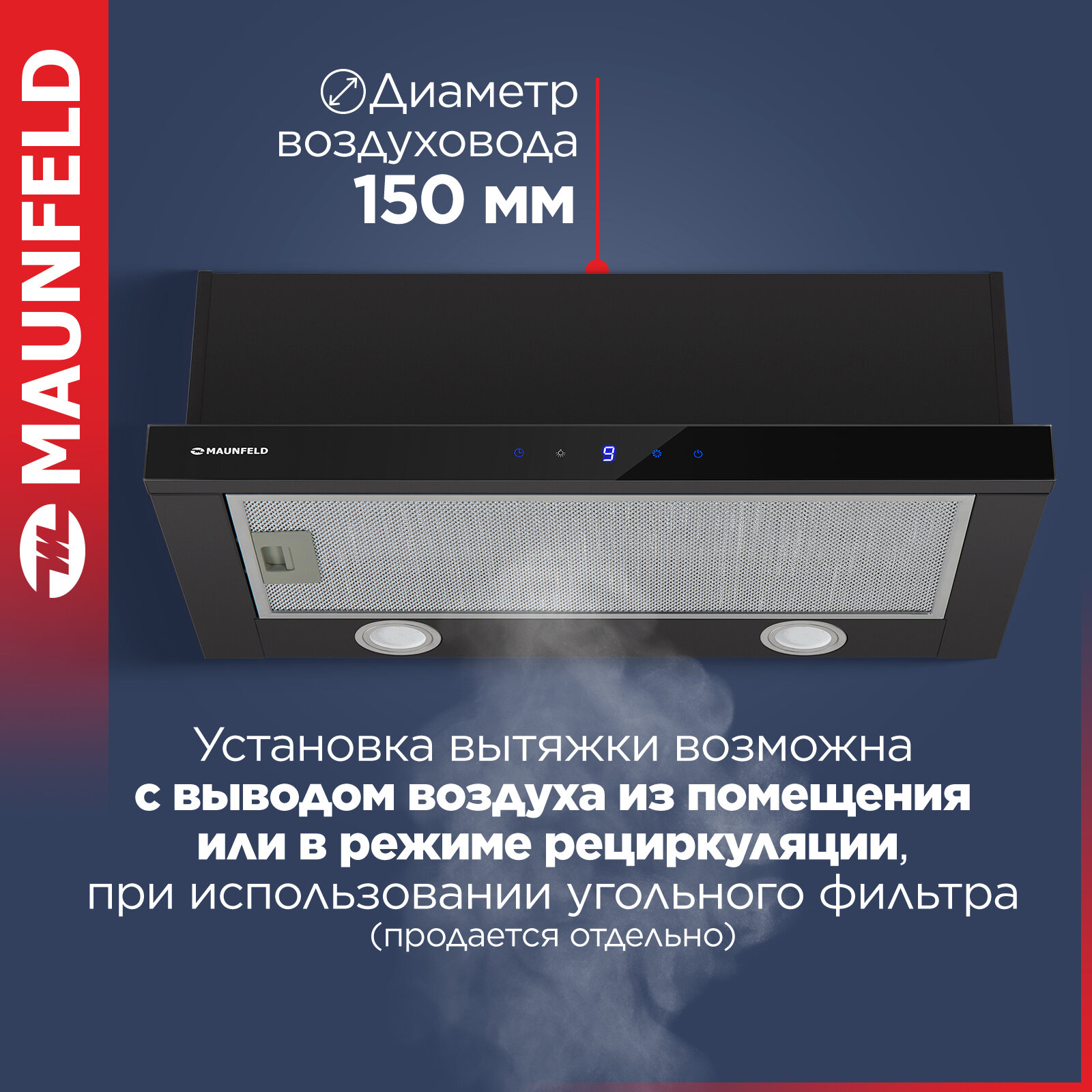 Вытяжка для кухни 60 см встраиваемая MAUNFELD VS Touch 850, сенсорное управление, телескопическая интересное: