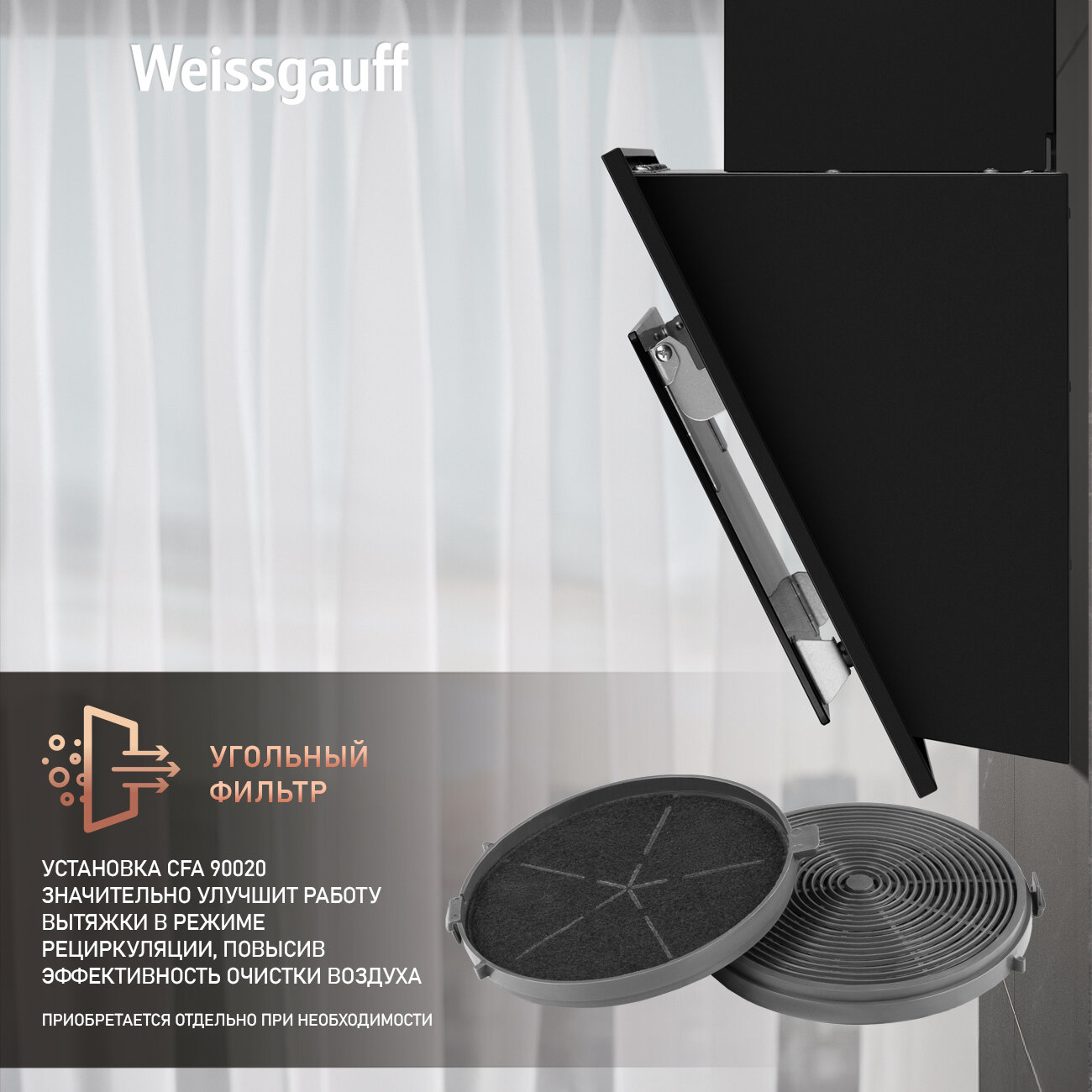Купить Купольная вытяжка Weissgauff Yota 500 PB BL, производительность 900 м3/ч, уровень шума 50 дБ