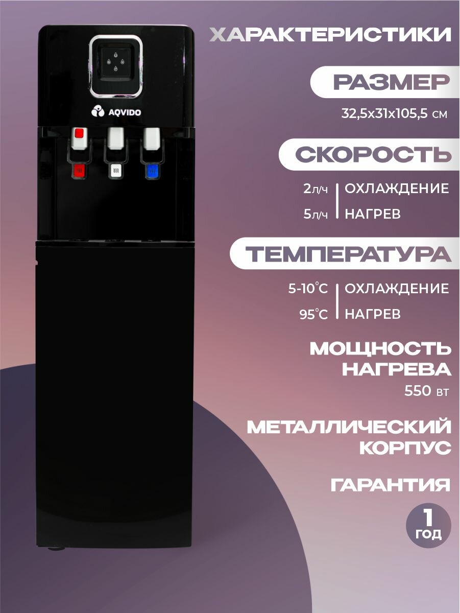 Кулер для воды с нагревом и компрессорным охлаждением напольный AQVIDO BSY-811 черный