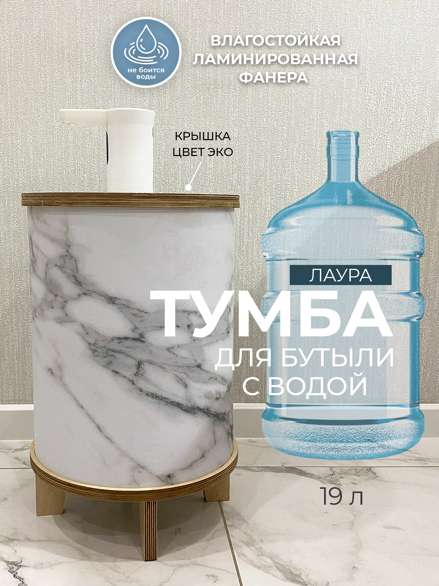 Тумба-чехол АзбукаДекор "Лаура", для бутылки 19л, алюминий/фанера, серое мраморное покрытие интересное: