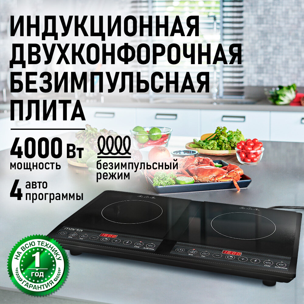 Плита индукционная электрическая MARTA MT-HP4227A безимпульсная черный жемчуг интересное: